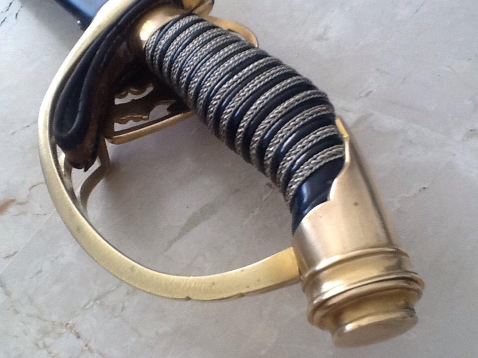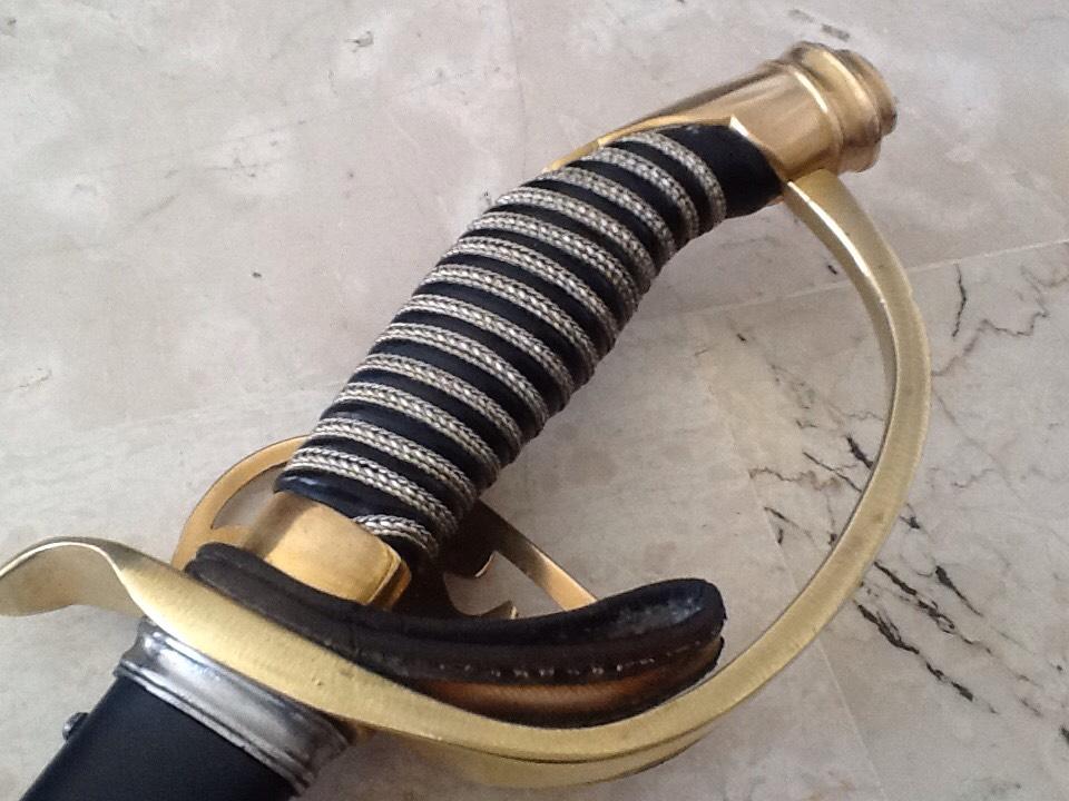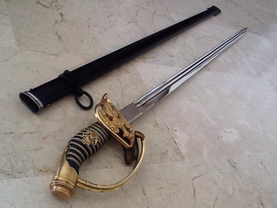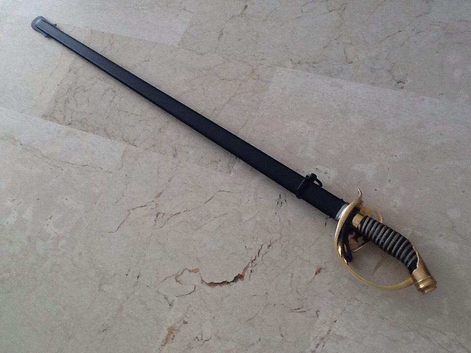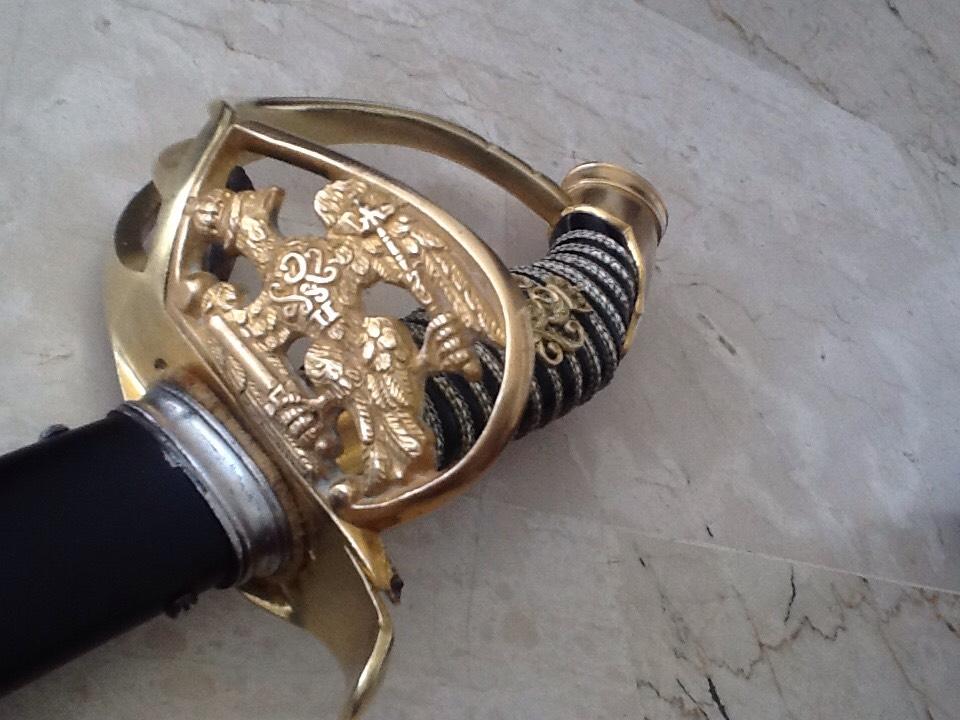 Рукоять из позолоченной латуни. Трехствольная гарда с прусским орлом. Короткохвостый навершие, и позолоченной латунной монограммой Вильгельма II клинок, длиной 80,6 см. Клинок подписан на рикассо (Coppel Alexander ALCOSO Solingen). Черные стальные ножны. На гарде изображен прусский орел, кайзер Вильгельм II. Период Второго рейха. Такие сабли с гардой, украшенной прусским орлом, очень трудно найти в первозданном виде; орнаменты часто оторваны или сломаны. Эта сабля также использовалась во время Первой мировой войны. Эта сабля, изготовленная в 1898 году, находится в очень хорошем состоянии. Рукоять сохранила позолоту. Клинок в очень хорошем состоянии. Ножны в хорошем состоянии; ножны были отреставрированы.